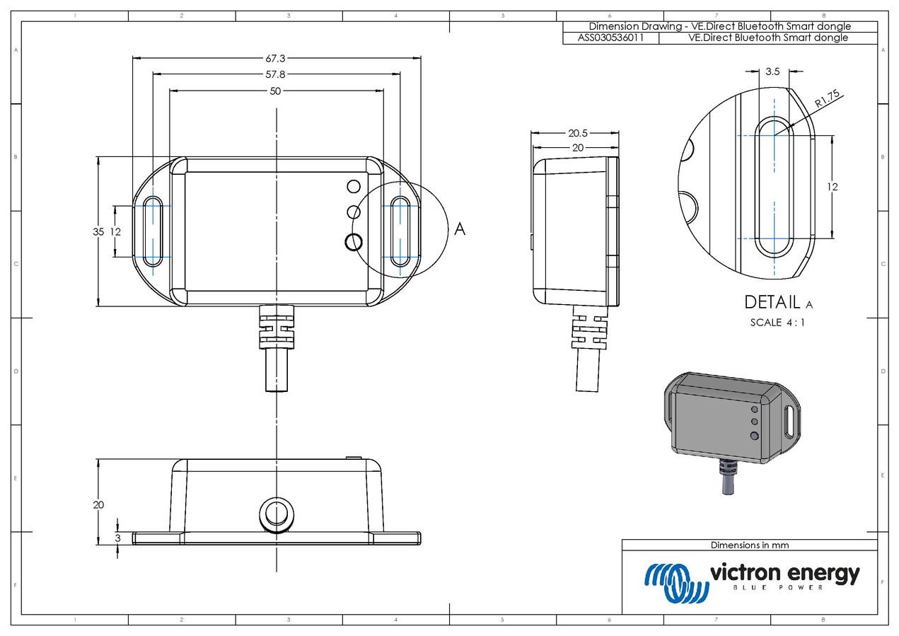 The dongle can be connected to almost all Victron products that have a built-in VE.Direct port. The Victron VE.Direct Bluetooth Smart dongle uses Bluetooth Low Energy.