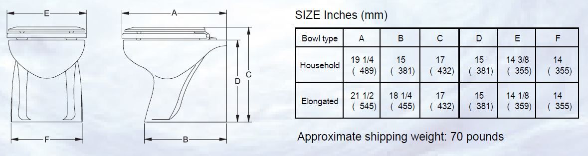 Today the Atlantes now incorporates the Vortex-Vac technology in a bowl that offers a more substantial footprint as well as the just like home handle option. The advantage of the Vortex-Vac technology is that the waste is efficiently moved from the bowl by a vacuum action created by the pump rather than depending on remote vacuum generation.