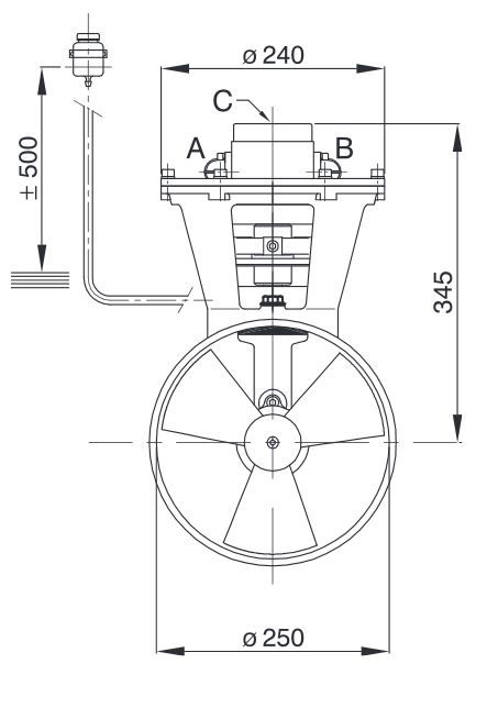 The BOW160HMD hydraulic thruster may be fitted to Ø 250 mm GRP, steel or aluminum tunnels or used as astern thruster. Offers virtually unlimited running time.
