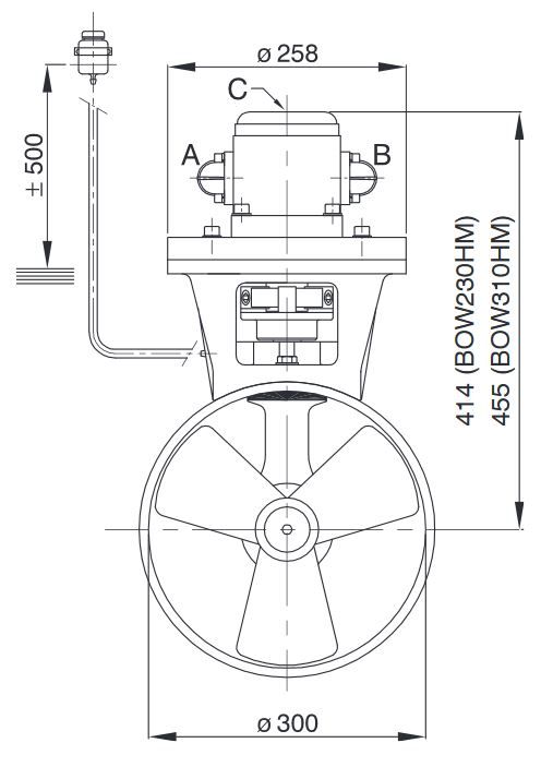 The BOW160HMD hydraulic thruster may be fitted to Ø 250 mm GRP, steel or aluminum tunnels or used as astern thruster. Offers virtually unlimited running time.