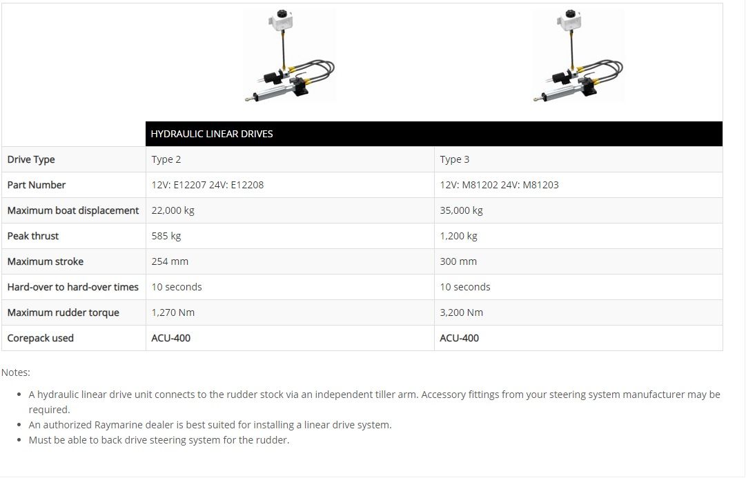 The drive unit is the part that interfaces with your vessel's steering system to keep you on the right course. Hydraulic linear drives are self-contained hydraulic steering systems consisting of a reversing pump, reservoir and hydraulic ram. A hydraulic linear drive unit connects to the rudder stock via an independent tiller arm. Accessory fittings from your steering system manufacturer may be required.