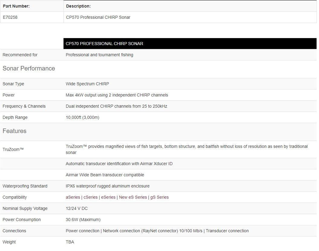 - Raymarine CP570 Clearpulse Professional CHIRP Sonar Module