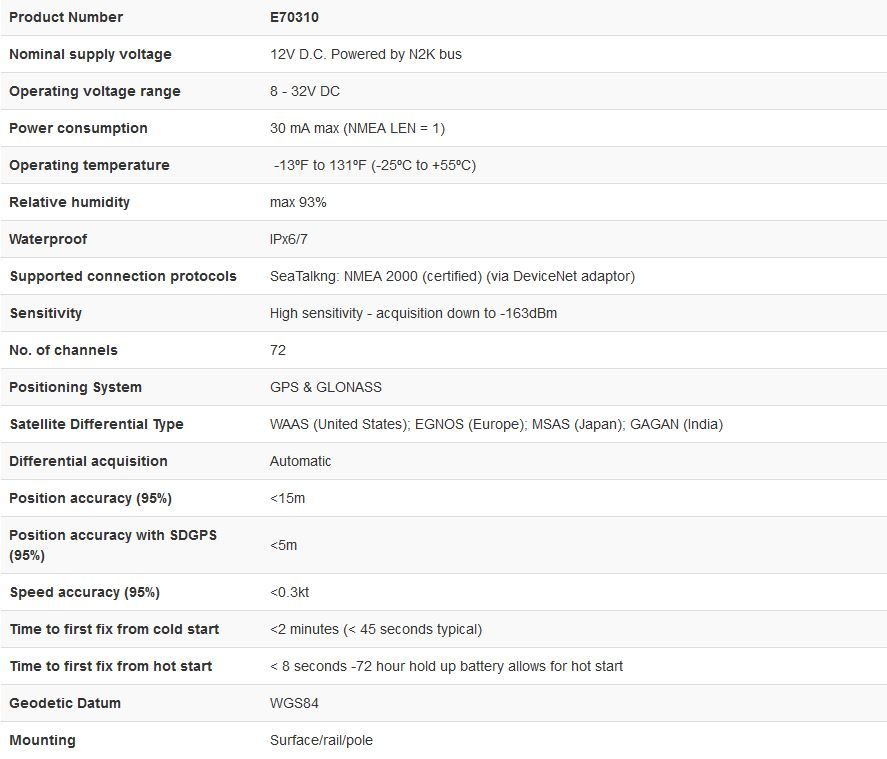 Low power consumption: 30mA (1 LEN). SeaTalkng and NMEA2000 compatible (using a device net adapter cable). Designed for low profile surface mounting or optional pole mounting.