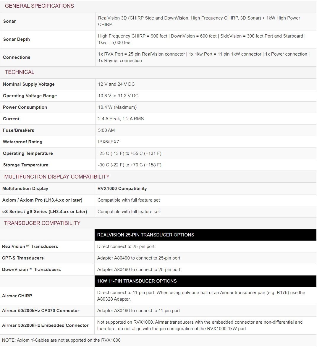 - Raymarine RVX1000 CHIRP Sonar