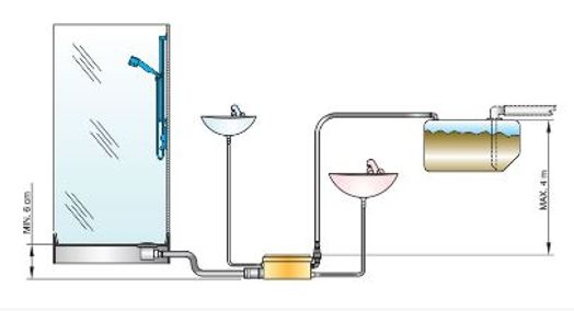 The bottom of the GWDS assembly must be at least 6 cm below the shower tray or washbasin outlet. The waste water tank can be located up to 4 metres above the GWDS unit or up to 20 metres away from it. Instead of pumping the waste water into the holding tank, it can of course also be discharged directly overboard. If the system becomes clogged, the housing cover can be easily removed to clear the blockage.