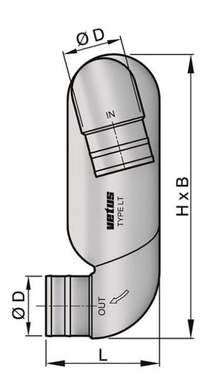 A Vetus gooseneck raises the exhaust hose above the waterline so that water cannot backfill the exhaust system. After the engine is stopped, all cooling water in the exhaust hose will run to the lowest point of the system which is where the waterlock should be situated. In order to limit the quantity of water the gooseneck should be fitted as closely as possible behind the waterlock. If required it may also be fitted directly onto the transom exhaust connection (TRC40R).