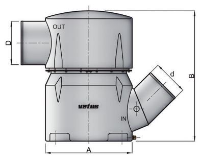 Vetus Plastic Muffler MGS type, waterlock for water injected exhaust systems, with rotatable top. Made of corrosion-free synthetic materials. Excellent sound reduction. Capacity 75 litres.