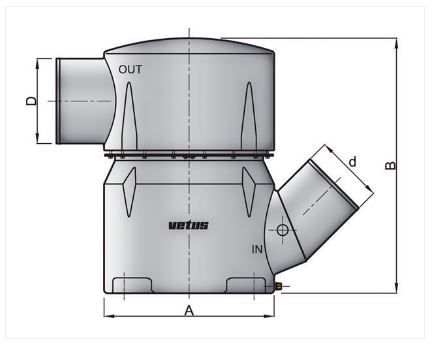 Vetus Plastic Muffler MGS type, waterlock for water injected exhaust systems, with rotatable top. Made of corrosion-free synthetic materials. Excellent sound reduction. Capacity 75 litres.
