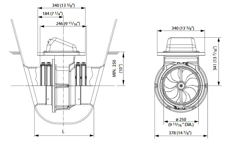 The RIMDRIVE is unique in its design - when operating this thruster is virtually silent. The propeller forms the rotating part of the electric motor (rotor) and the fixed winding (stator) is mounted in the tunnel. Therefore noisy gears are not used in this design. Secondly a ring mounted around the propeller prevents the propeller from cavitating.