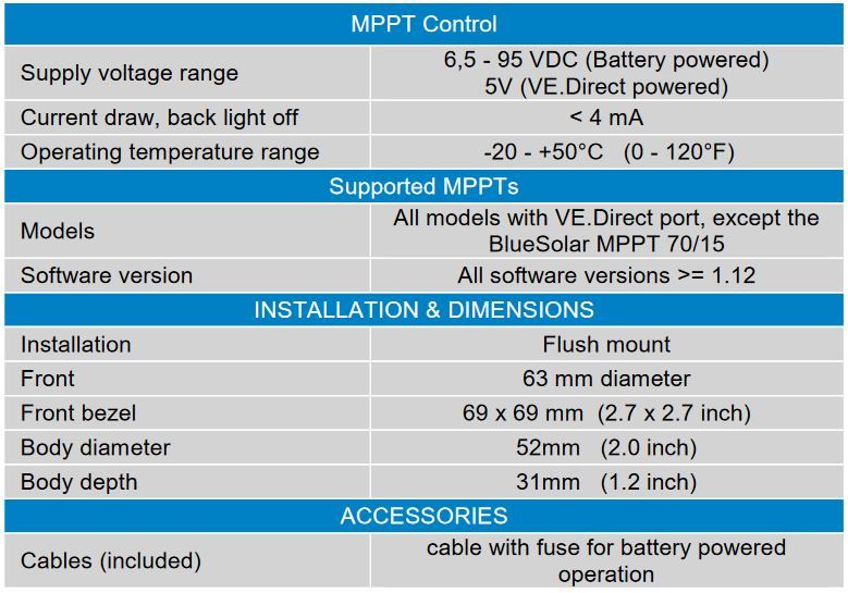 - Victron MPPT Remote Panel, VE-Direct Models