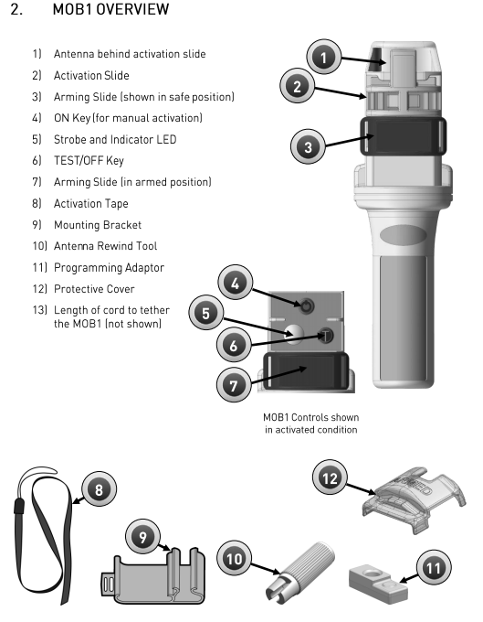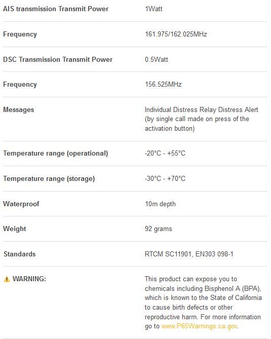 The MOB1 is intended to be installed within the life-jacket and will activate automatically on inflation, sending the first alert within 15 seconds.  The MOB1 is waterpoof to 10 metres.