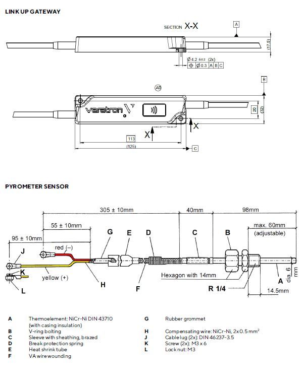 The Pyrometer variant allows the connection of the exhaust sensor thermocouple (N03-320-264). A 6 meters extension cable is included in the kit.