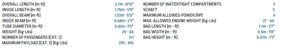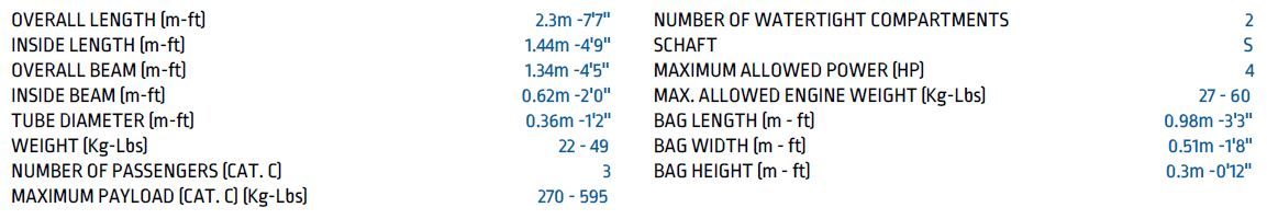 - OTHER: Aluminium oars, Foot Inflator, Repair Kit / Owner's Manual , Transport Bag