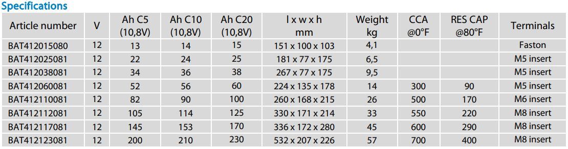 Victron recommend the Super Cycle battery for applications where an occasional discharge to 100% DoD, or frequent discharge to 60- 80% DoD is expected. An additional advantage of the new chemistry is a slightly smaller size and less weight compared to the standard deep cycle AGM batteries. The internal resistance is also slightly lower compared to other standard deep cycle AGM batteries.