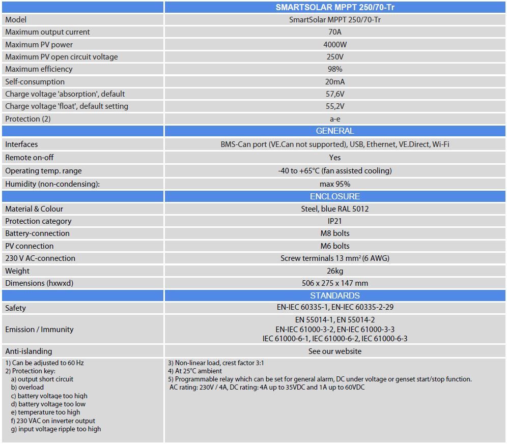 Two outstanding functions - prioritizes battery charging by the MPPT charge controller - connects to the internet, enabling remote monitoring (VRM website) and remote control.