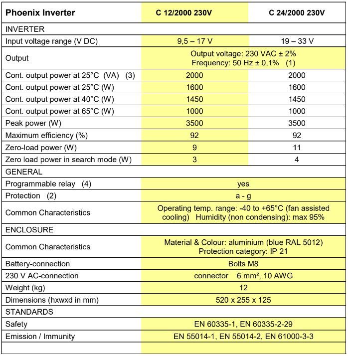 The Phoenix Inverters Compact is available from 1200VA up to 2000VA in 12V or 24V.