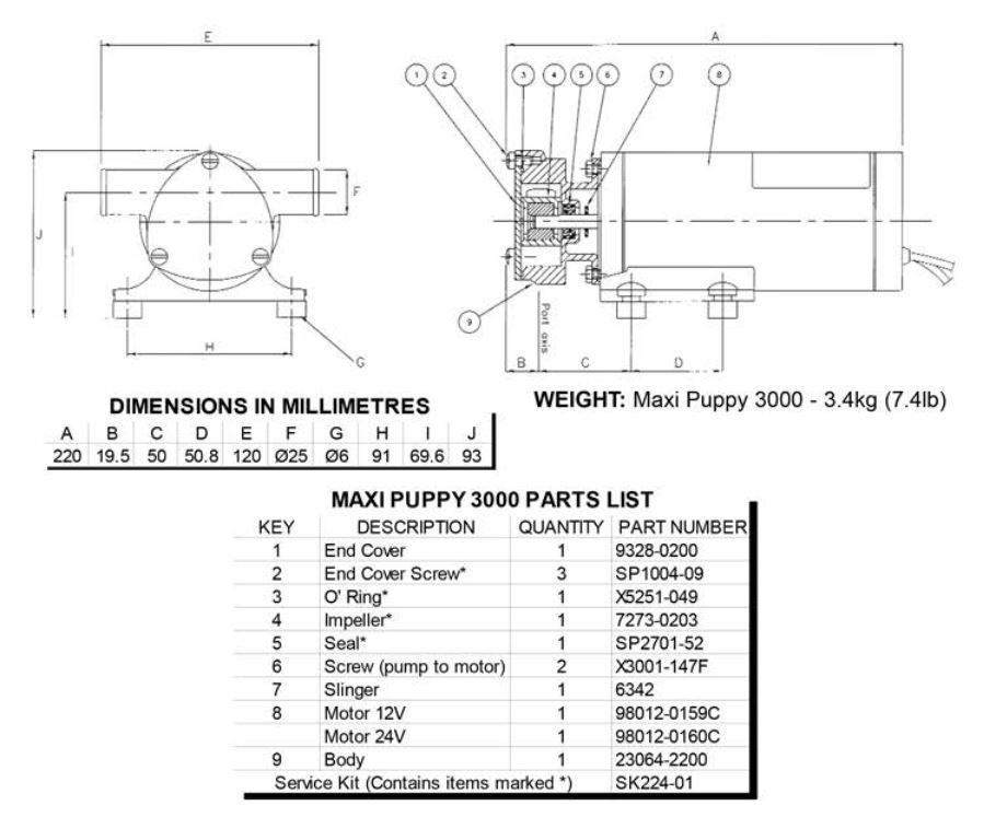 - Jabsco Maxi Puppy Continuous-Rated Bilge Pump