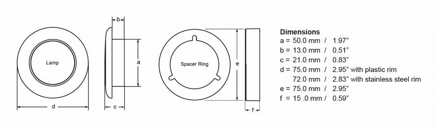 Advanced lens technology provides a cool and even spread of soft light without glare or eye strain. Hella marine LED courtesy lamps consume a fraction of the energy of traditional bulb lamps and run very cool due to their low current draw of less than 0.5W (less than 0.04A @ 12V). This provides safer installation into lightweight materials where the heat of incandescent lamps may cause damage to the surrounding structure.
