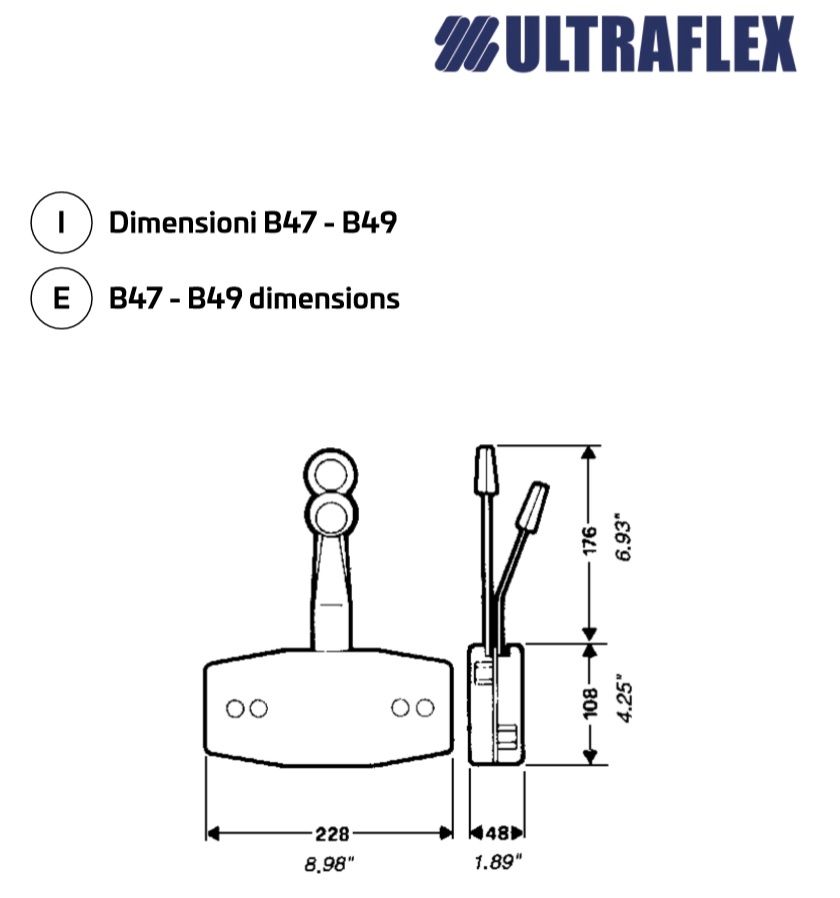 Ultraflex two lever side mount controls, suitable for all outboard engines. Made of nylon fiberglass with anodized aluminium levers. Left or right side mount installation.