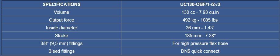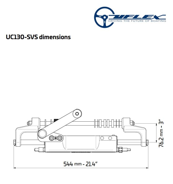In the applications with dual UC130-SVS cylinder it is necessary to order a standard UC130-SVS cylinder (link arm attached to the starboard side of the cylinder) and a port UC130P-SVS cylinder (link arm attached to the port side of the cylinder). See appropriate section for A95 tie bar required for use on dual engine/dual cylinder applications. Depending on the applications on the outboard engines, the UC130P-SVS port cylinder is available in 2 versions.