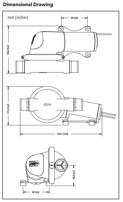 The Jabsco 50890 Series is a diaphragm waste pump with 1-1/2 Inch ID hose barb ports, coupled to a 12 or 24 Volt DC Motor. This super quiet and compact pump has a straight-through waste path that easily passes solids in suspension, making it the ideal solution for emptying holding tanks. Self-priming up to 10 feet (3m) and capable of extensive dry running, it provides a 5 GPM (19 LPM) output. The multi-positional pump head offers a variety of installation options. If mounted vertically the motor should be above the pump head. Use rubber grommets provided to absorb vibration.
