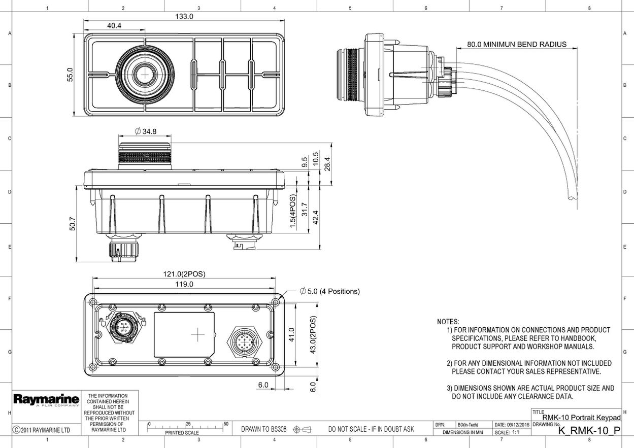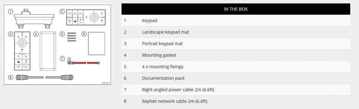 The Raymarine RMK-10 Remote Keypad is an ultra-compact networked keypad that provides full control of single or multiple aSeries, cSeries, eSeries, eS Series, gS Series and AXIOM Range Multifunction Displays running compatible lighthouse II or III software.