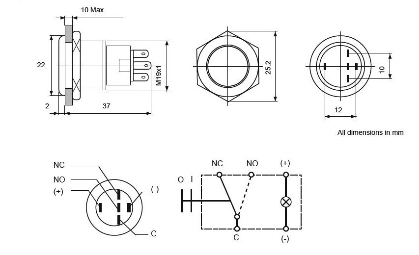 These through panel mount switches are IP67 rated when installed and ideal for switching lighting or installing into custom switch panels and manufactured from 304 stainless steel.