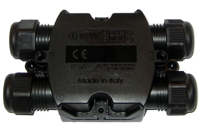 4 way junction box for use with all Bluefin LED lights, allows multiple lights to be linked together safely in one convenient box. IP68 rated.